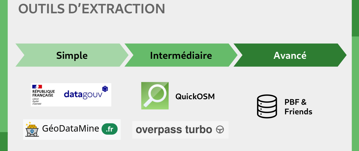OpenStreetMap est une source de données inépuisable, découvrez comment facilement récupérer les objets sur votre territoire ! Nous allons découvrir trois outils : GéoDataMine, Overpass Turbo, QuickOSM